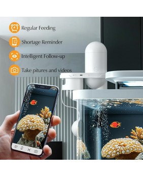 El comedero VISUAL FISH FEEDER combina un comedero automático controlado por una aplicación con una cámara HD, permitiéndote alimentar y monitorear a tus peces desde cualquier lugar y en cualquier momento.